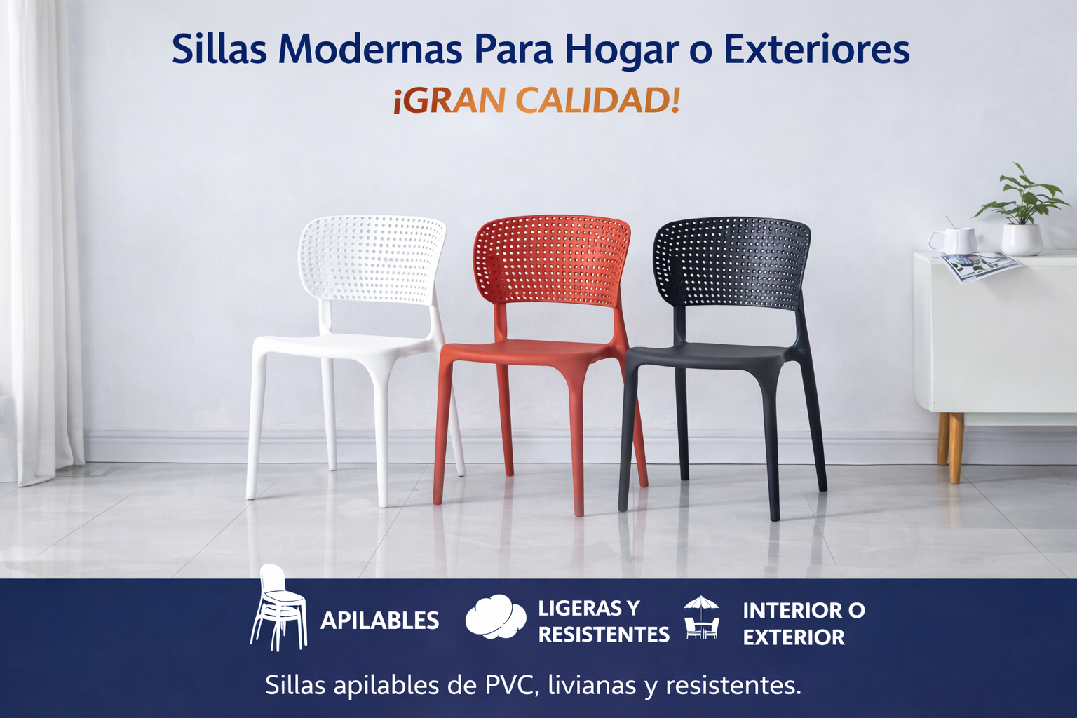 Sillas apilables de PVC que combinan diseño moderno, ligereza y alta resistencia, ideales para interior y exterior.